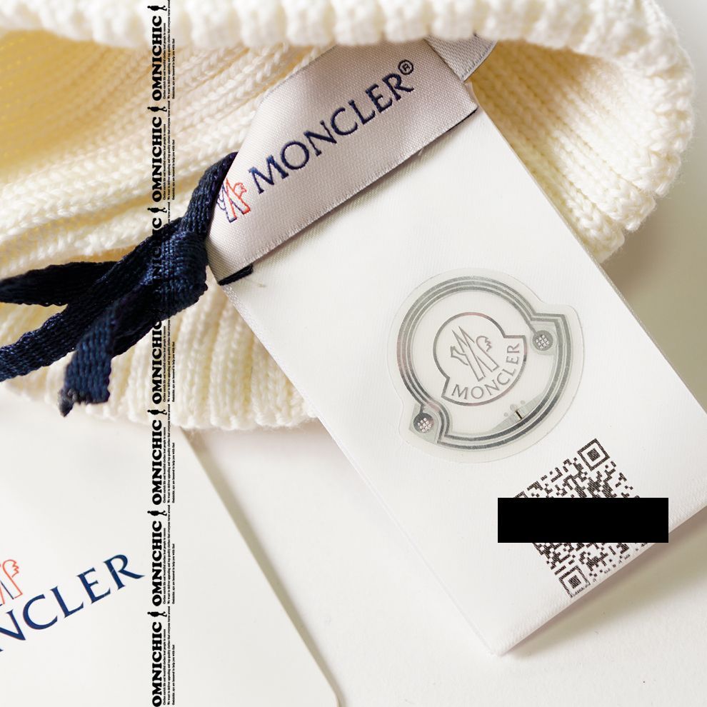 豪華 リアルフォックス ファー 安心の MONCLER モンクレール 大人もOK ロゴ ウール ホワイト リブ ニット キャップ M ビーニー