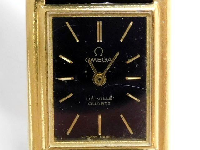 3 F オメガ 時計 591.0029 K 18 プッシュリューズ De Ville デビル スクエア レディース 腕時計 クォーツ アンティーク OMEGA 7I