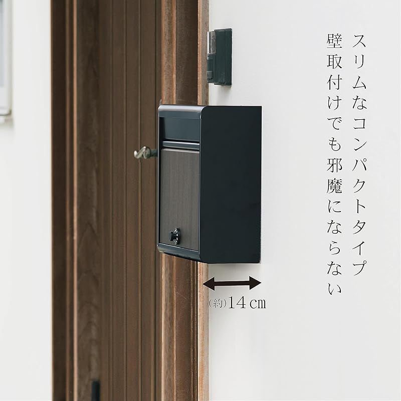 ??【スリムですっきりとした玄関に】ポストは奥行は(約)14cmのスリムタイプ。置き場所を選ばず、壁取り付けでも邪魔になりません。