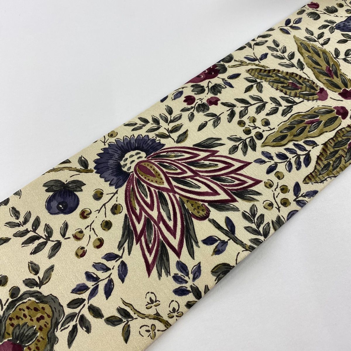 名古屋帯 秀品 紬地 草花 ベージュ 正絹