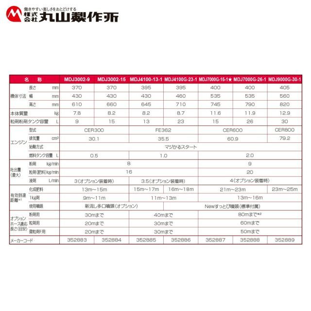 ●粉剤から肥料まで安定した吐出性能を誇る丸山の背負動力散布機は、用途・圃場条件に合わせて選べるラインナップが豊富です。