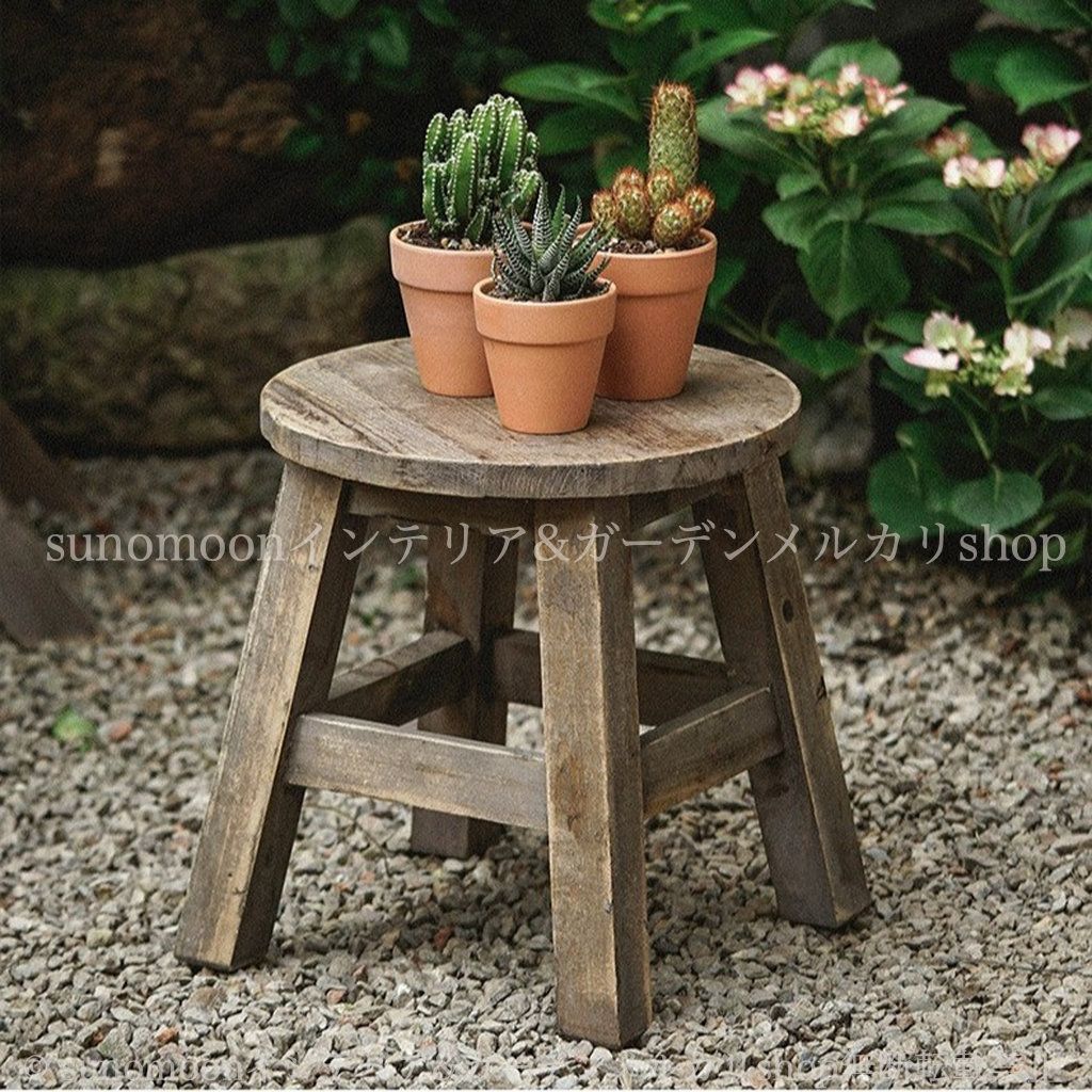 インテリア ガーデニング 庭の装飾 ブラウン ガーデン雑貨 茶色 お洒落 8-14 オブジェ 丸型 木製 スツール ヴィンテージ調 ガーデン プランターラック 丸 雑貨 ガーデンインテリア おしゃれ