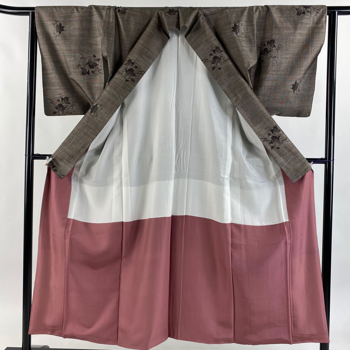 紬 身丈152.5 cm 裄丈63 S 袷 枝花 霞 焦茶色 正絹 秀品