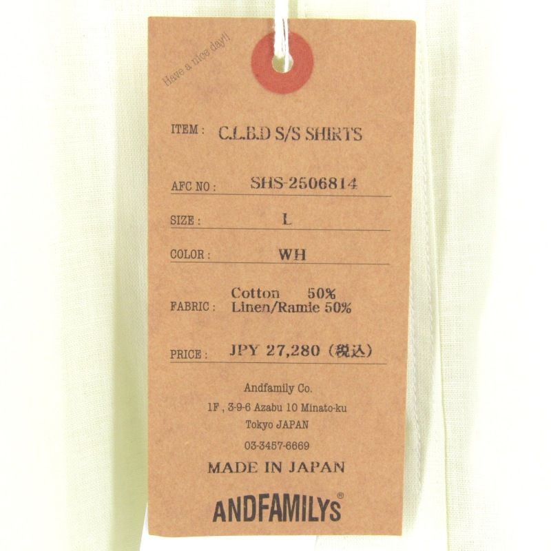 未使用 ANDFAMILYS アンドファミリー C.L.B.D S/S SHIRTS SHS-2506814 半袖ボタンダウンシャツ ホワイト 白 L タグ付き