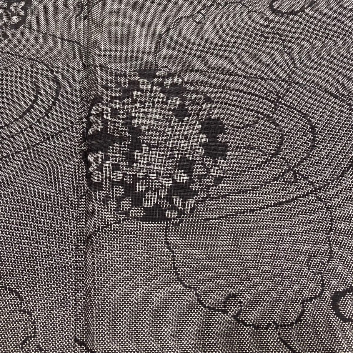 紬 身丈162 cm 裄丈64.5 M 袷 雪輪 草花 黒灰 正絹 秀品