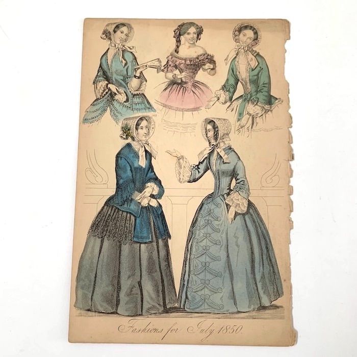1836年から1850年の間のファッションイラストです。状態は写真でご判断ください。H24cm W15.5cmほどの大きさです。