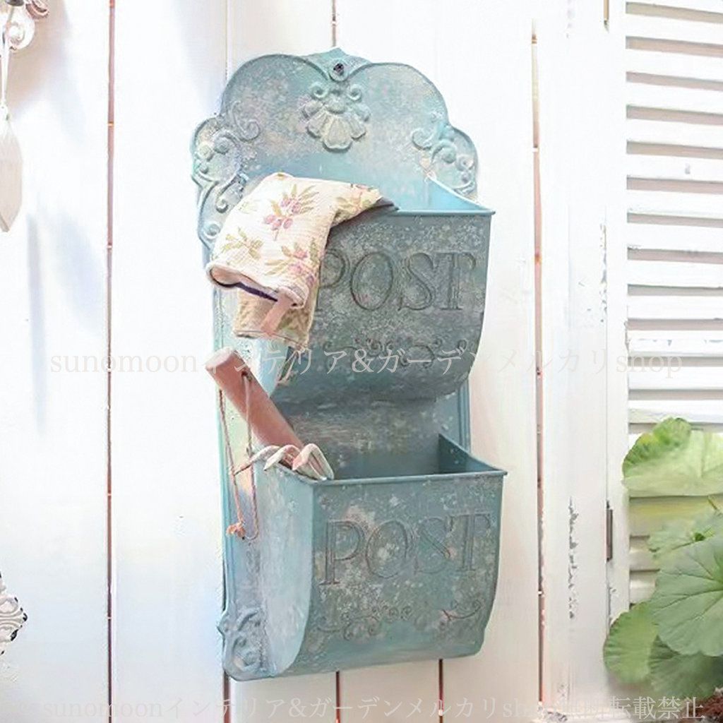 ポスト 壁掛け シャビー加工 インテリア グリーン シャビーシック 緑 ヴィンテージ調 郵便受け ガーデンインテリア おしゃれ 庭の装飾 8-14 ガーデン雑貨 小物収納 ガーデニング 雑貨 ガーデン お洒落 鉄