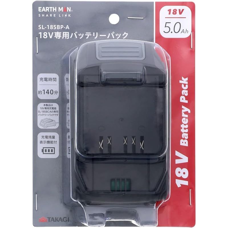 儀 Takagi 燕三条ブランド EARTH MAN SHARE LINK 18 V バッテリーパック 5.0 Ah 充電時間140分 残量3段階ランプ点灯 全機種使える共通バッテリーラインナップ SL-185 BP-A 1