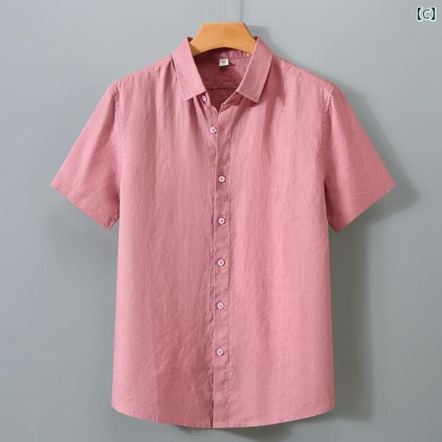 2 XL メンズ ファッション 服 男性用 オシャレ シンプル 大人 かっこいい 大きいサイズ ストリート 紳士服 リネンシャツ 半袖 夏 薄手 通気性 リネン コットン シャツ