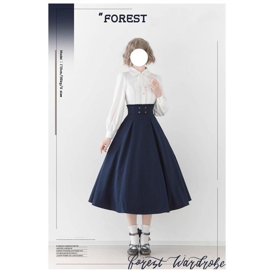 ロリータ スカート ロング丈 ストライプ柄 レディース フ リボン レトロ風 ゴスロリ 上品 エレガント 森ガール ファッション ロリータワンピース