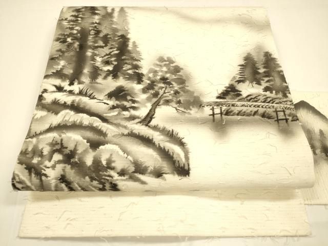 平和屋着物 九寸名古屋帯 髭紬 作家物 手描き 遠山風景文 正絹 cm