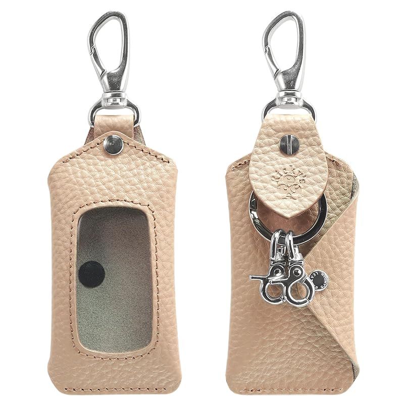 商品名:スマートキーバッグホルダー Lサイズ オイルしぼ グレージュ 【Ricky's】 単体 ほぼ 全機種対応 スマートキー クリア窓 窓付き キーケース キーレス ケース キーカバー 玄関扉 鍵 家 ドアキー YKKAP LIXIL 三協アルミ 本革 革 レザー