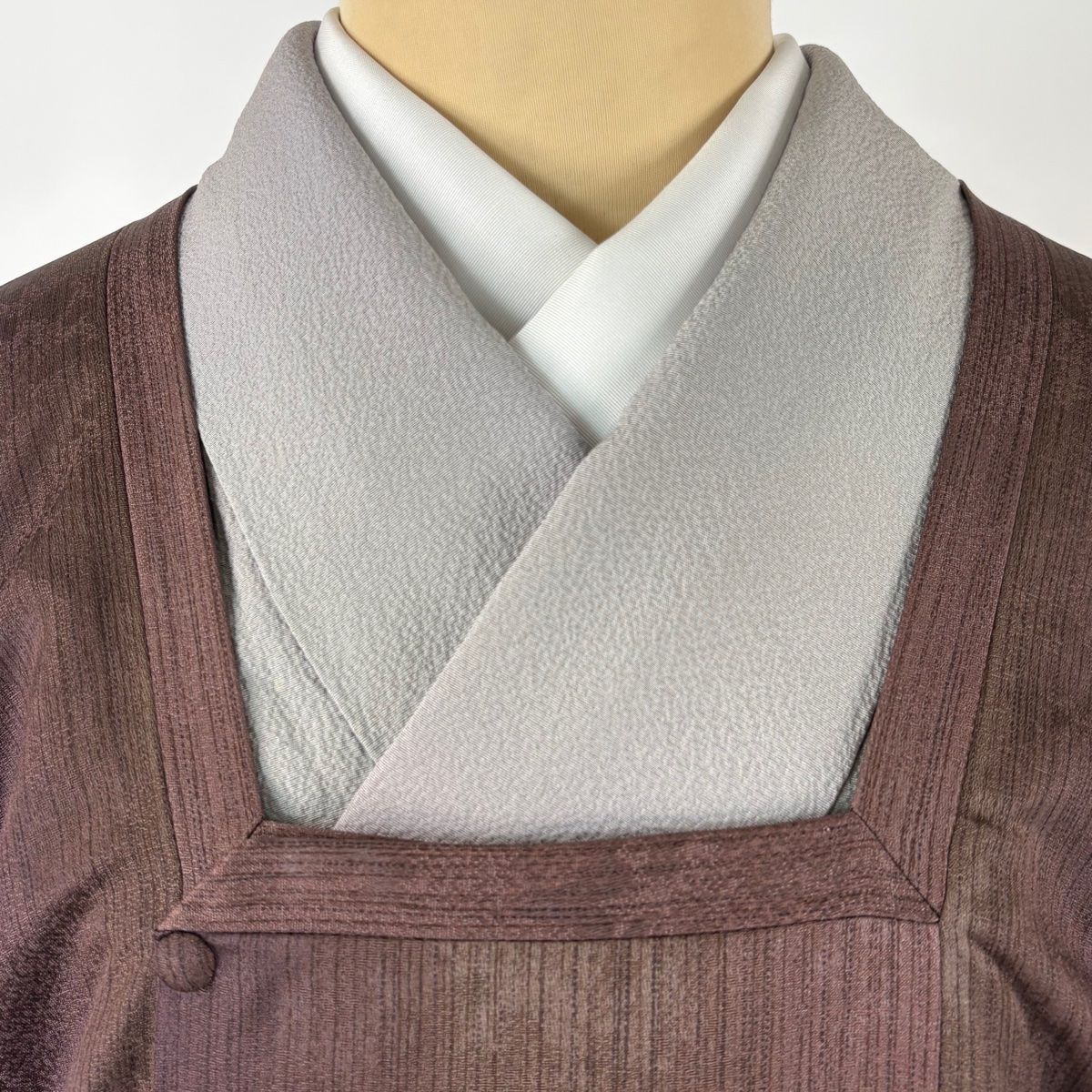道行 身丈109 cm 裄丈68 L 和装コート 角衿 縞 地紋 茶紫 正絹 名品