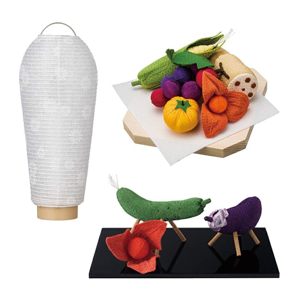 セット品の内容:新型 小珠 紋天紙張 白紋天、ちりめん 牛馬飾り ほおずきセット、ちりめん お供物セット 台付