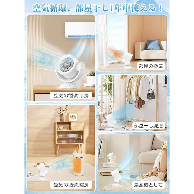 2025新登場 サーキュレーター 扇風機 100段階風量調節 上下左右自動首振り 静音DCモーター 30畳パワフル送風 usb充電式 10000 mAh大容量10 Hタイマー機能付き リモコン付き 自動運転 お手入れ簡単 オールシーズン 換気 空気循環 部屋干し