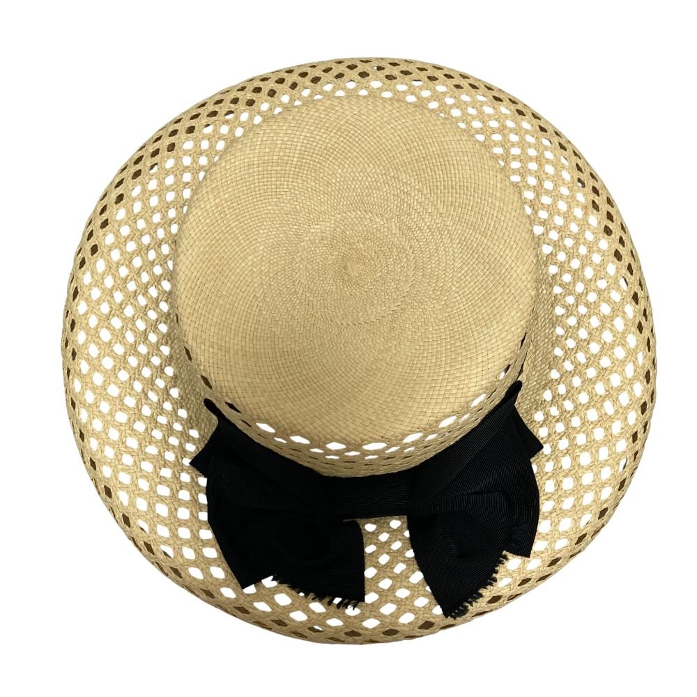 CA 4 LA カシラ POLKA DOT パナマハット べージュ×ブラック レディース 古着