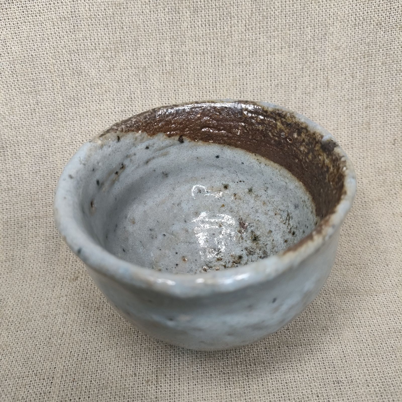 斑ぐい呑 欠け目 楕円ぐい呑 灰被りぐい呑 唐津焼 窯元直売 山茶窯 日本酒 唐津市 蔵出し 登り窯 斑唐津 sazan gama