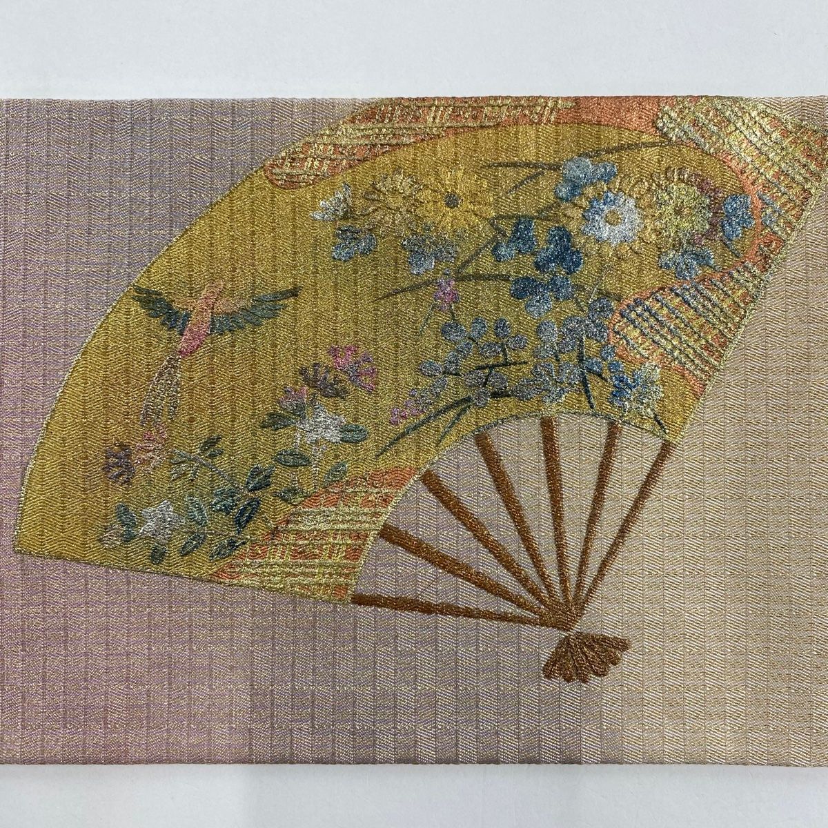 名古屋帯 秀品 扇 金銀彩 螺鈿 ベージュ 正絹