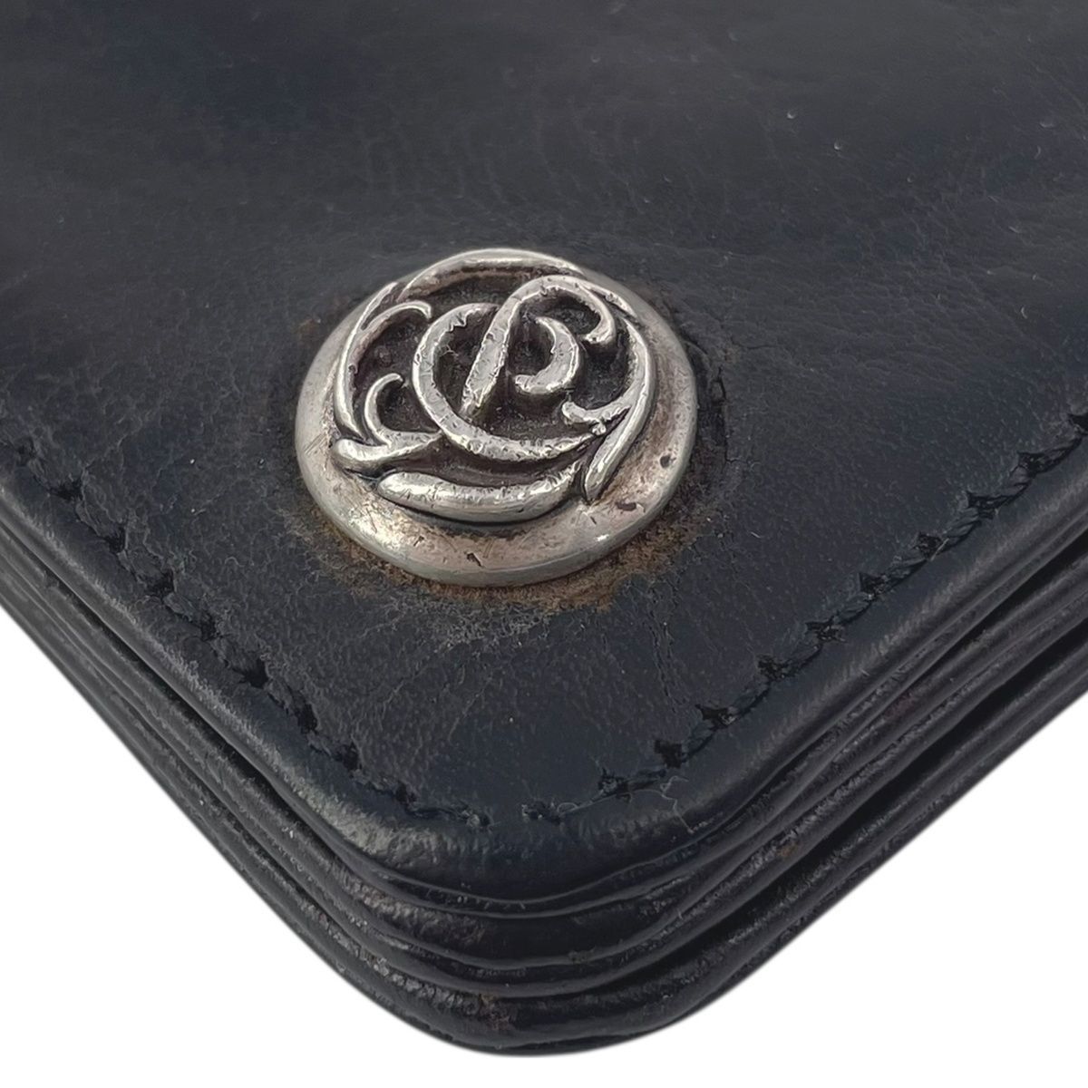 CHROME HEARTS クロムハーツ 1 ZIP ウォレット レザー ブラック シルバー フローラルボタン グロメット 1ジップ 財布 コンパクト RS