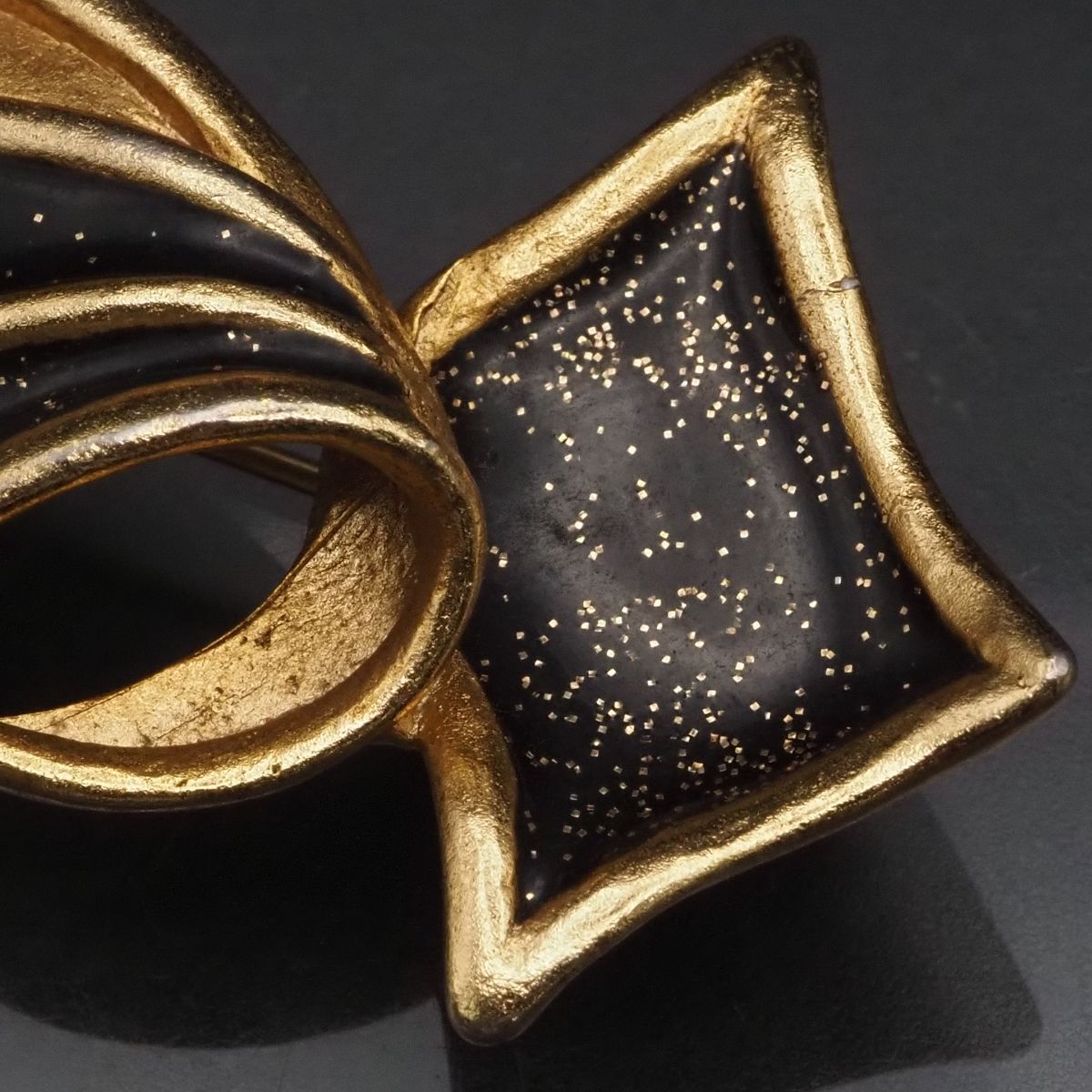F 048 UNGARO PARIS ウンガロ ブローチ 大ぶり ブラック ゴールド デザイン