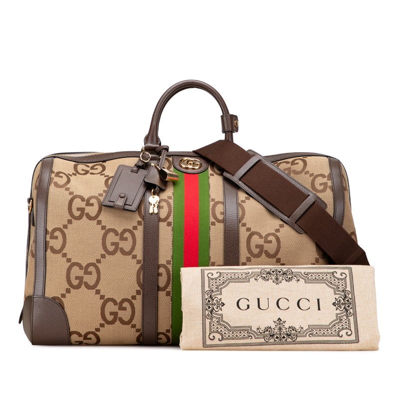 グッチ ジャンボGG シェリーライン ボストンバッグ ショルダーバッグ 2 WAY 724612 ブラウン キャンバス レザー レディース GUCCI 1-0230124