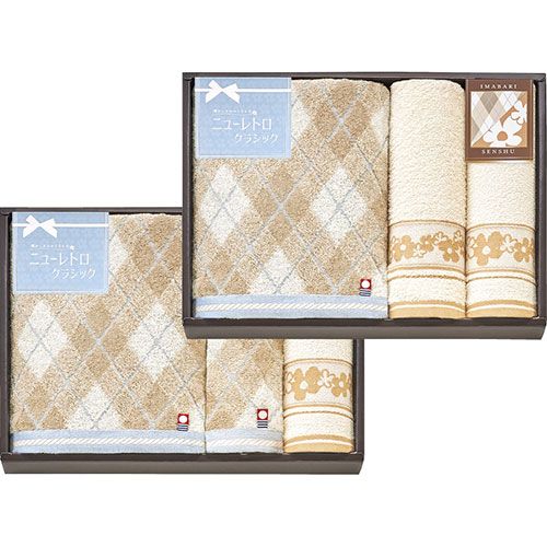 セット内容 : 今治バスタオル(60×110cm)・泉州ハンドタオル(34×35cm)×各2、今治フェイスタオル(34×70cm)・泉州フェイスタオル(34×75cm)×各1