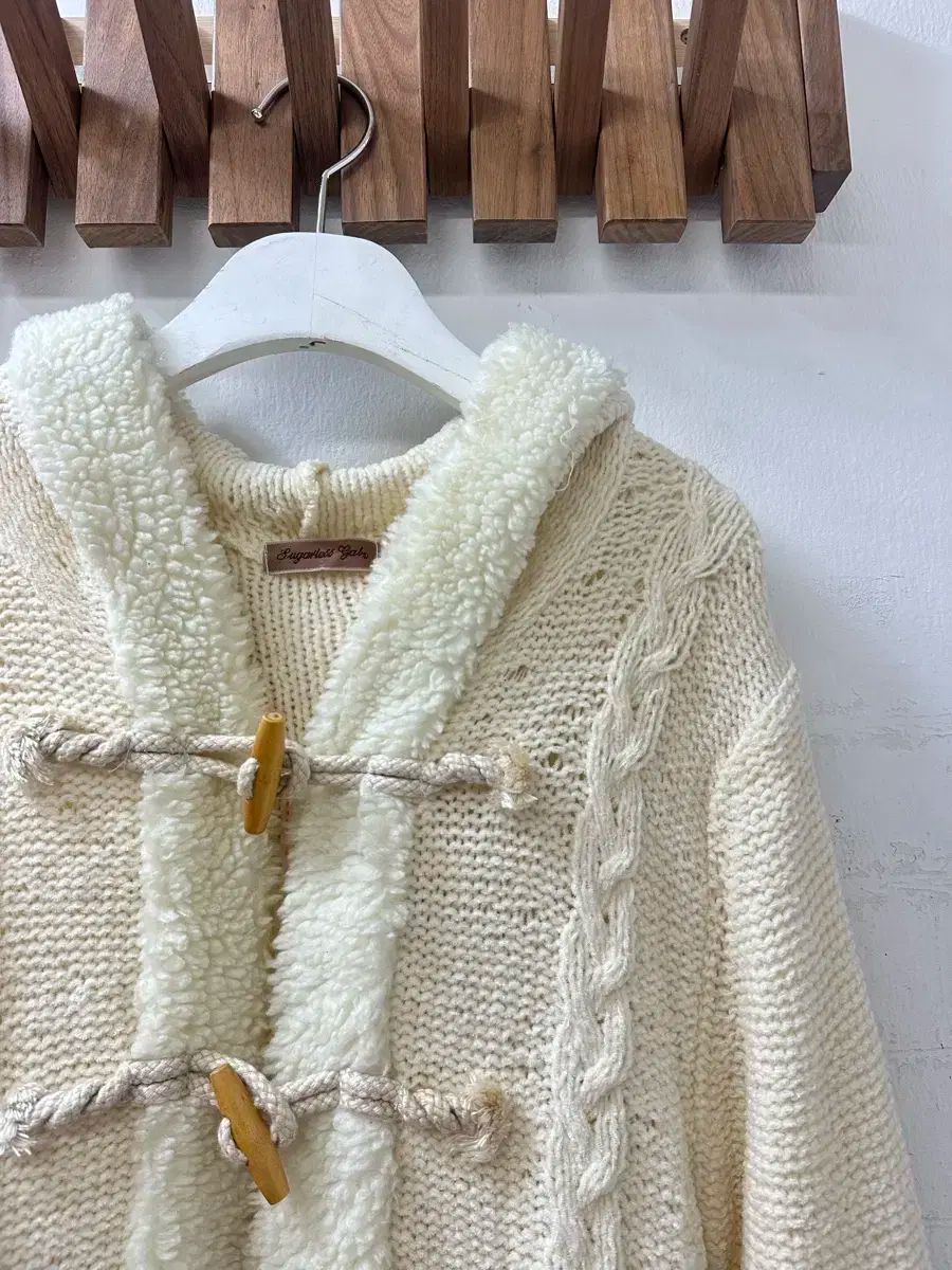 日本 ヴィンテージ 森ガール アイボリー トグルボタン ニット フード ダッフル ジャケット
