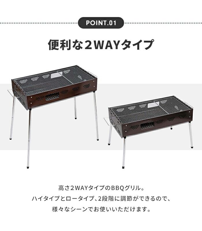 バーベキュー コンロ グリル アウトドア BBQ 大型 7~8人用 幅80 奥行40 高さ49 82 網付 高さ2段階 継足し口 ネジ不要 簡単 便利