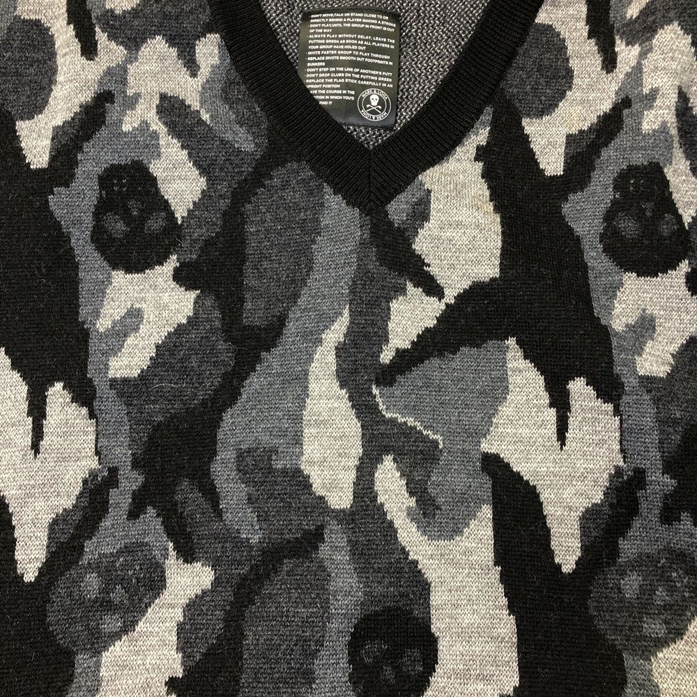サイズ L MARK-LONA マークアンドロナ Vネック ニットセーター 迷彩柄 カモフラ ブラック系 ゴルフウェア メンズ ストスト