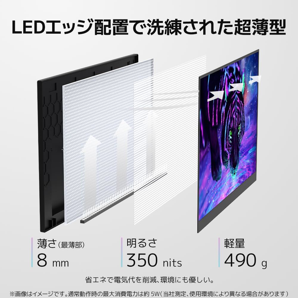 【A4サイズで持ち運び簡単】ちょうどA4用紙くらいのコンパクトサイズで、カバンにもスッと収まりす。外出先でも気軽に持ち運べ、オフィス同様のデュアルモニター環境を実現。PC画面との二画面表示で作業効率を向上させます。訪問先でモニターがなくても、資料をスマートに共有可能。どこでも快適な作業環境を構築できます。