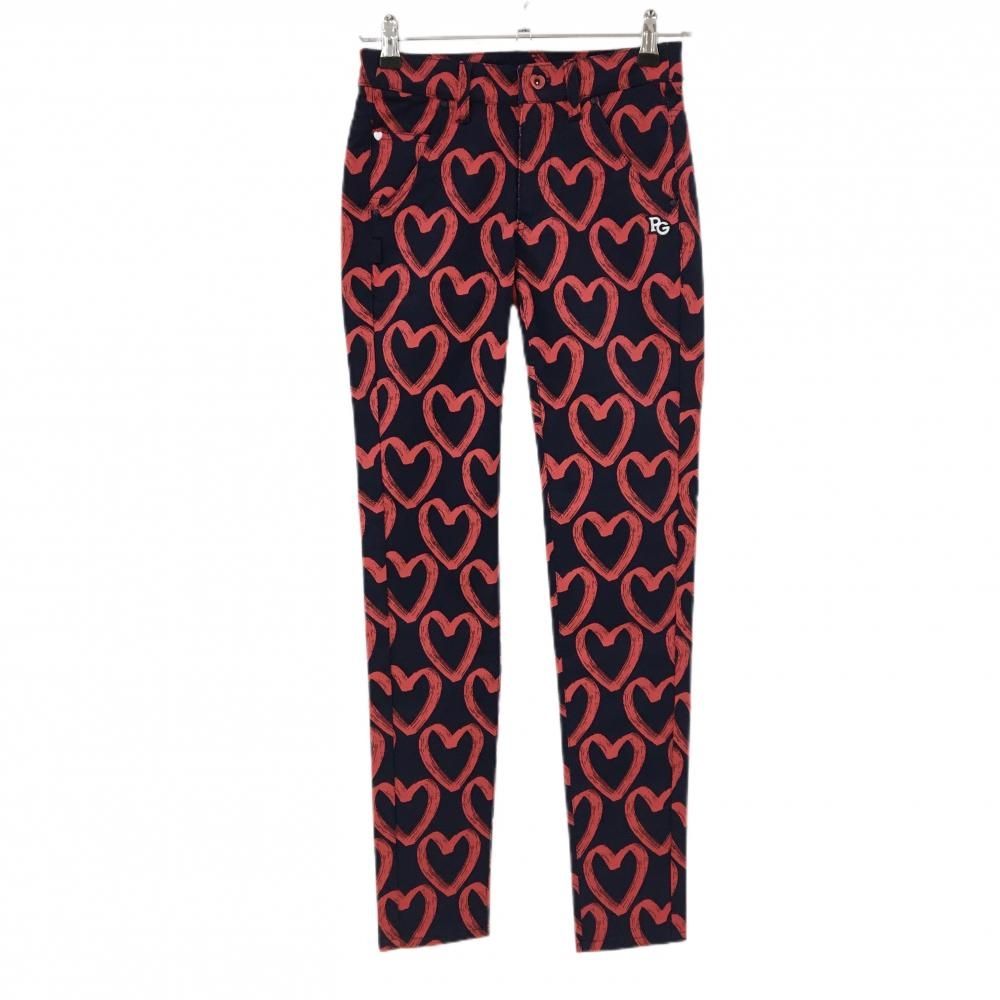 パーリーゲイツ パンツ ネイビー×レッド ハート柄 ロゴ刺しゅう レディース 00 XS ゴルフウェア PEARLY GATES