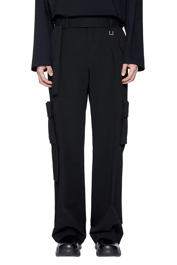 ウーヨンミ 黒 ナイロン ベルト ディテール カーゴ パンツ 50