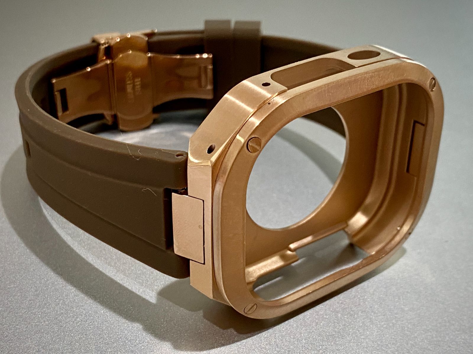 ローズゴールド×ブラウン アップルウォッチバンド ラバーベルト カバー ステンレス Apple Watch ケース 49 mm ウルトラ ultra スポーツ メンズ レディース キラキラ