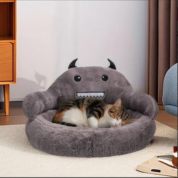 猫ベッド ふわふわ悪魔デザイン 猫 ペットベッド グレー