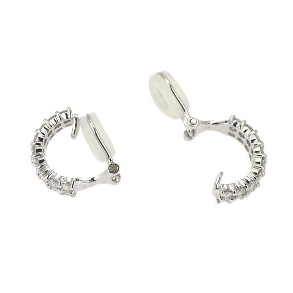 左右トータル2.00ctのダイヤモンドを贅沢に使用した、エレガントなホワイトゴールドイヤリングです。ふっくらとした前面にダイヤモンドを二列にしてセットした煌びやかな逸品。バネ式で着脱も簡単です。ワンランク上のおしゃれを演出してくれる、ラグジュアリーなダイヤモンドジュエリーをお楽しみください。