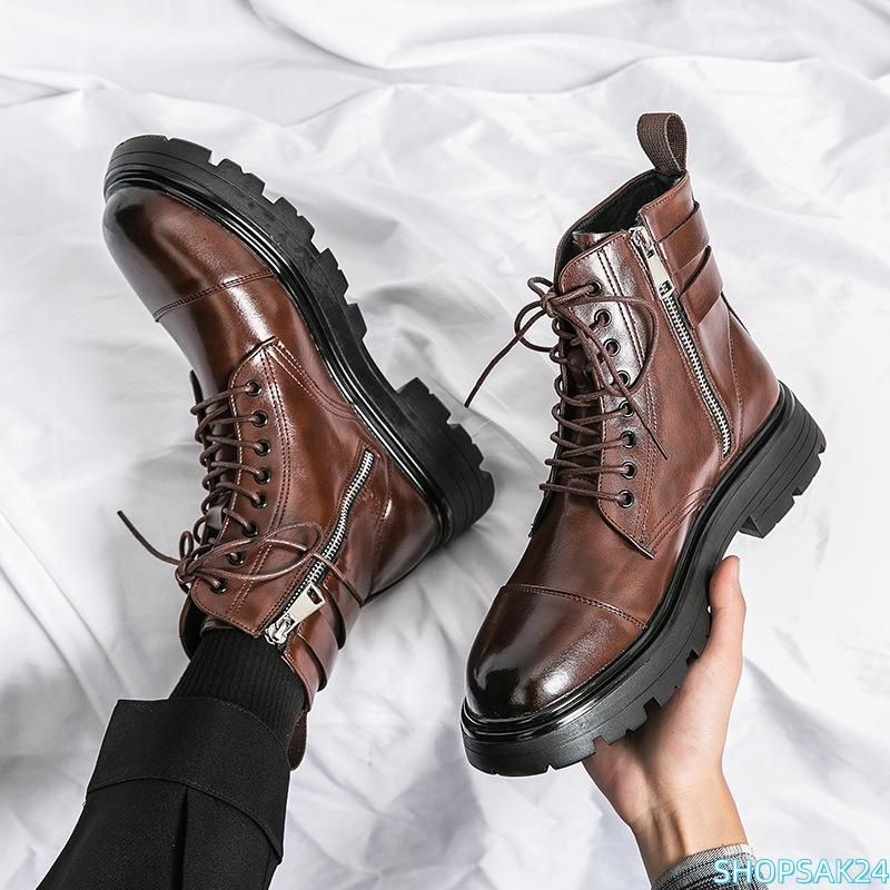 ショートブーツ メンズ ワークブーツ サイドジップ レースアップ ブーツ 厚底ブーツ 革靴 ミリタリーブーツ エンジニアブーツ 軽量 滑りにくい 防寒685