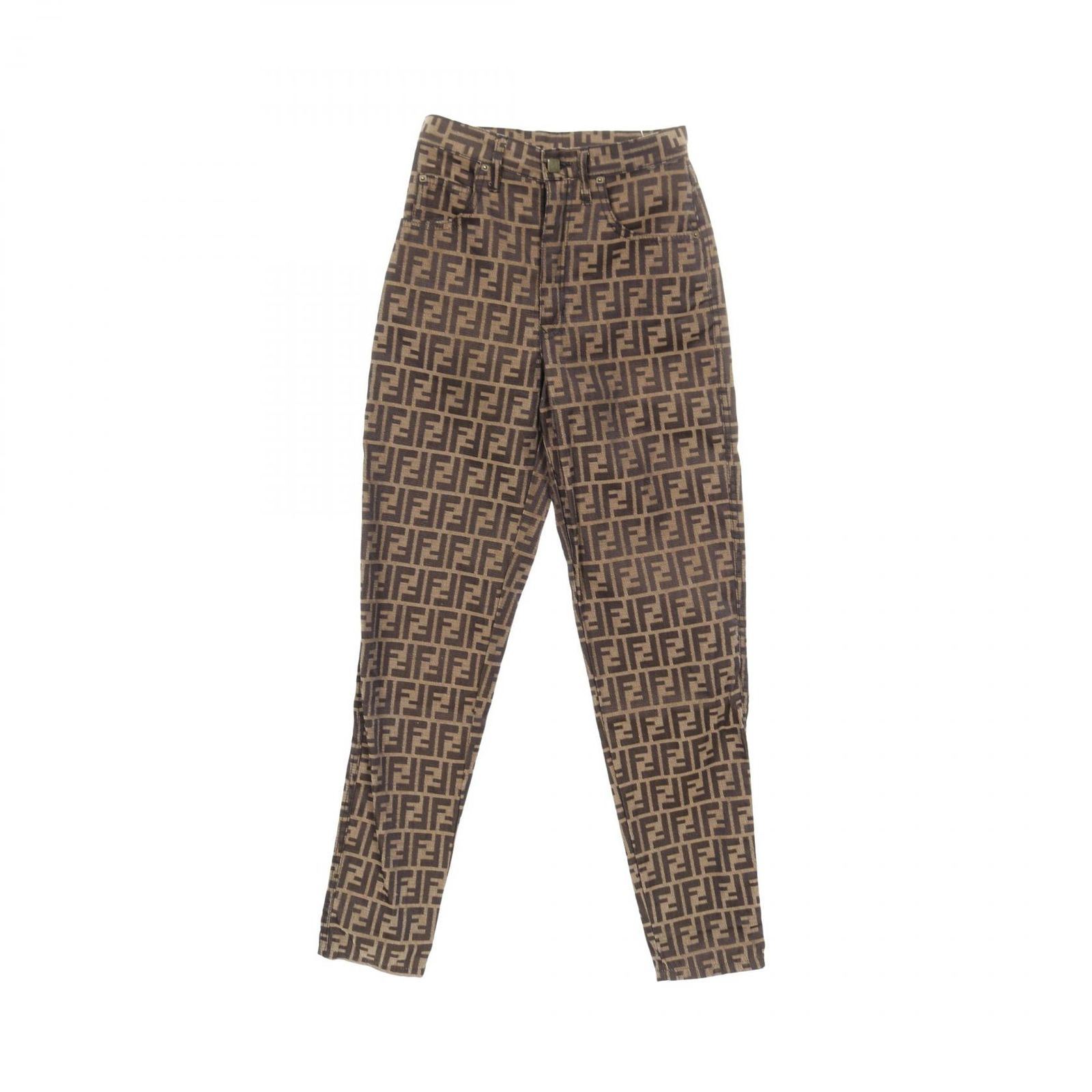 フェンディ FENDI パンツ ズッカ柄 ブラウン コットン ズッカ柄パンツ レディース B