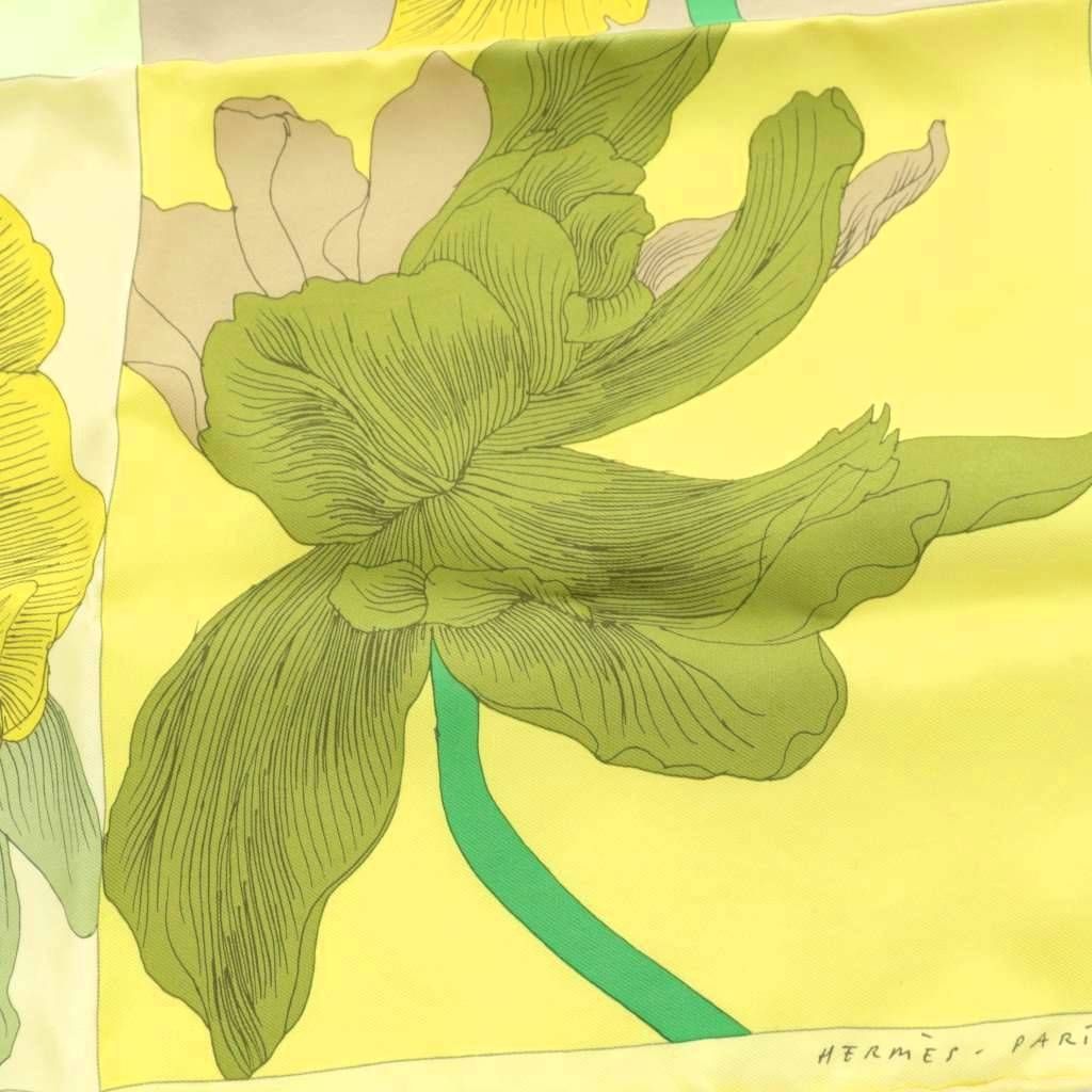 エルメス HERMES カレ45 ETUDE POUR UN IRIS スカーフ 花柄 黄 イエロー AN 23 OH