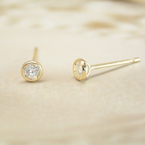計0.1カラットダイヤモンドを華やかな18金ゴールドにセットした定番一粒ダイヤモンドピアス。シンプルで上品なデザインは贈り物にも喜ばれます。