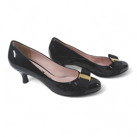サルヴァトーレフェラガモ Salvatore Ferragamo CARLA 55 パンプス ヴァラ ブラック 黒系 パテントレザー 5 D イタリア製
