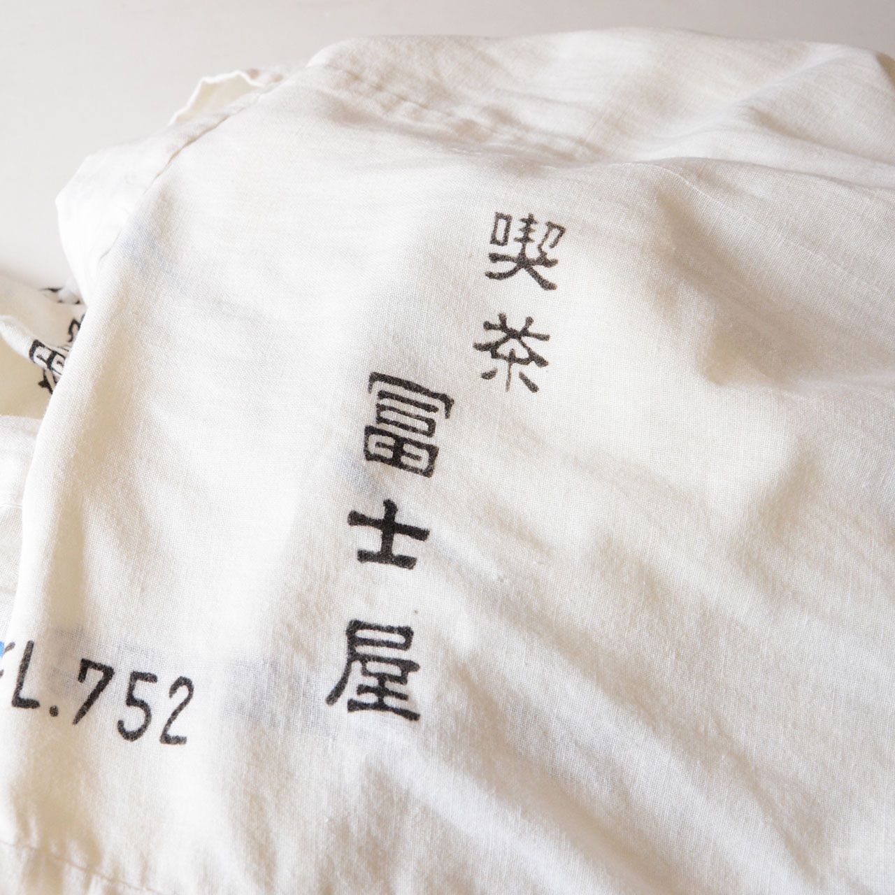使用されている手ぬぐいは「喫茶富士屋」という飲食店のもので、屋号にちなみ、一富士・二鷹・三茄子の絵柄が描かれています。