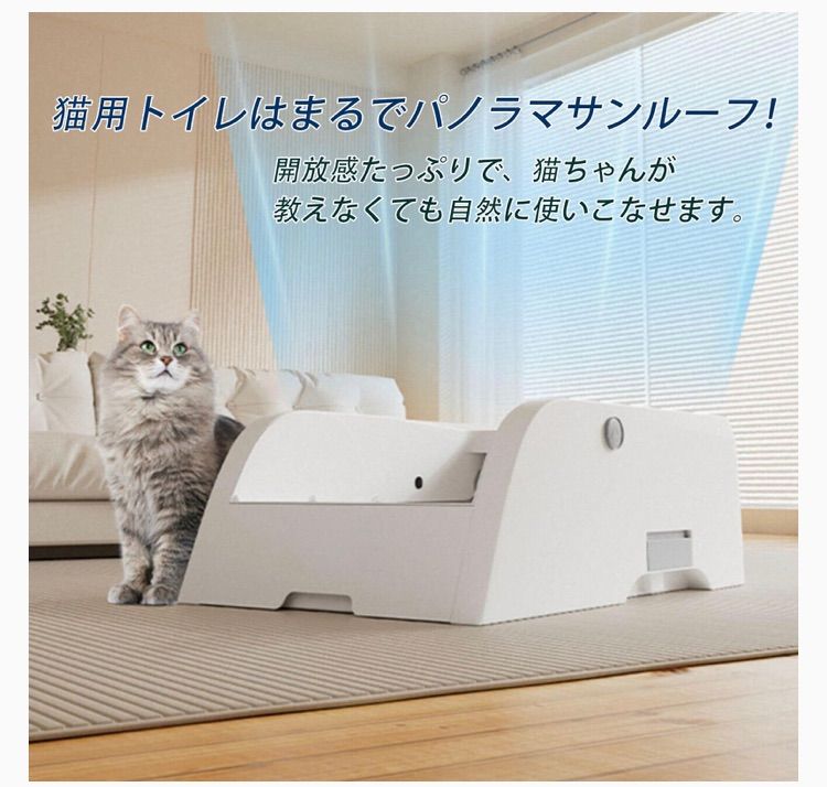 このスマート猫用トイレには赤外線センサーが搭載されており、猫の使用後に自動で清掃が行われます。