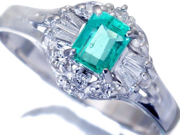 ジュエリー 爽やかエメラルドグリーン 良質天然エメラルド0.39 ct&ダイヤモンド0.15 ct Pt 900リング h 7820 vu