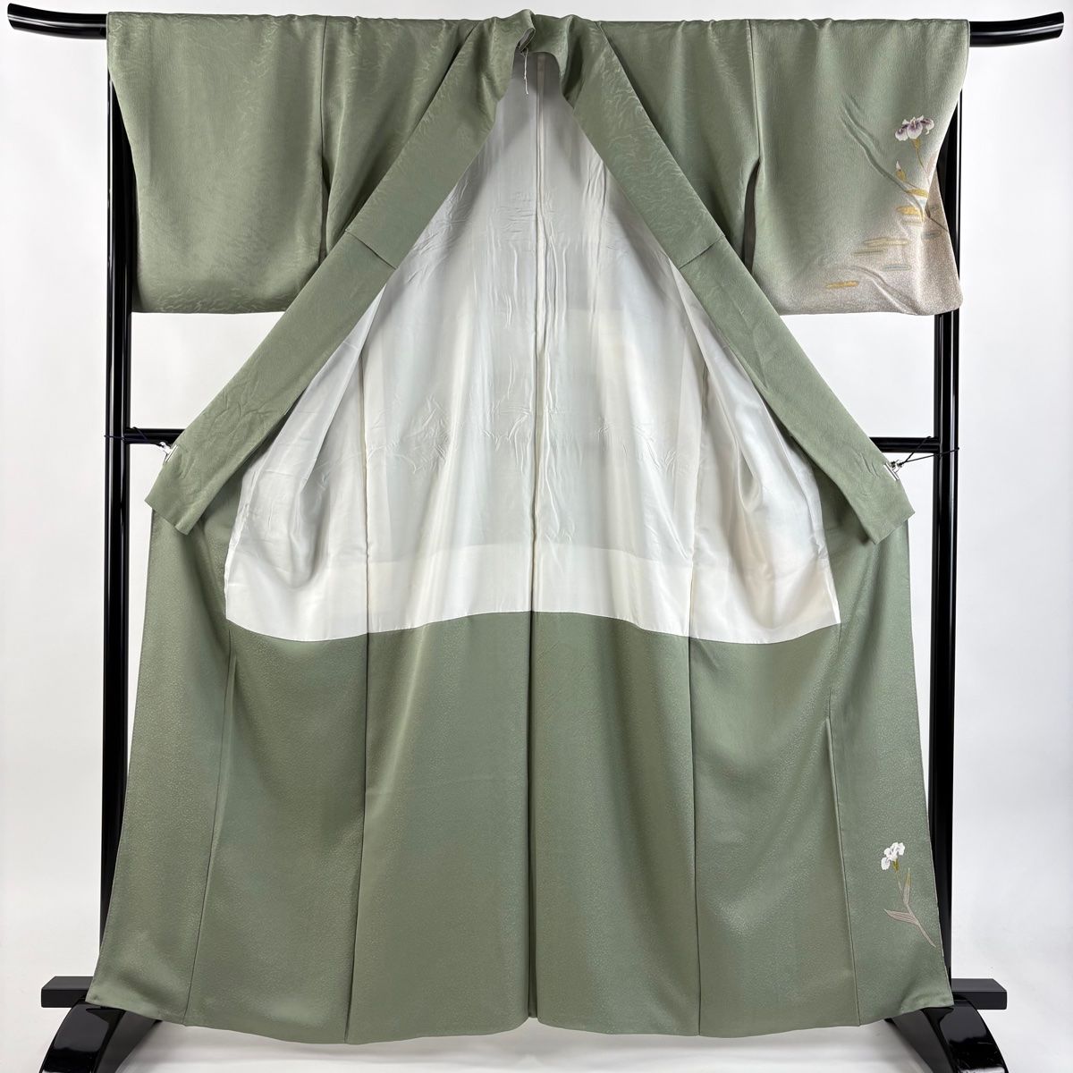 訪問着 身丈161 cm 裄丈67 M 袷 菖蒲 霞 金彩 薄緑 正絹
