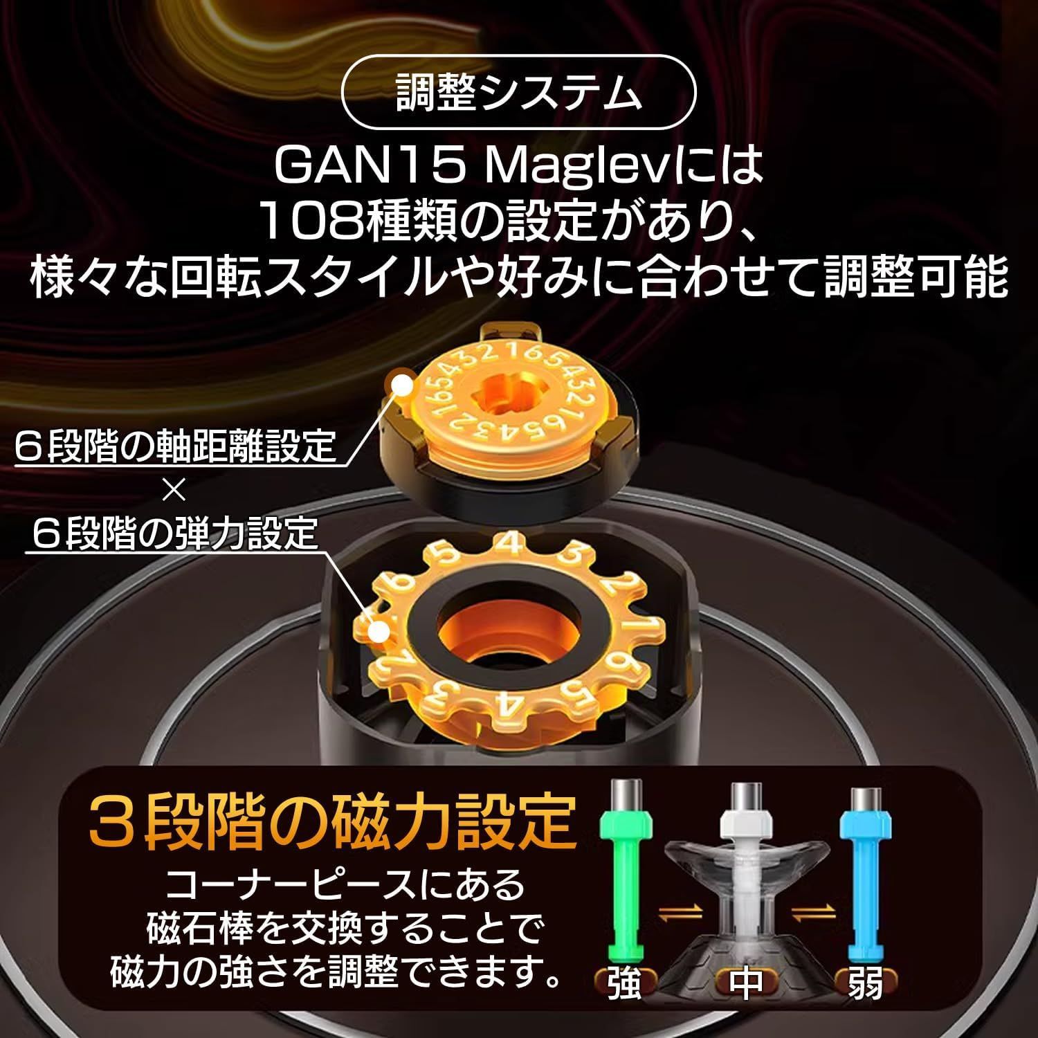 GAN15 Maglev Ten Years Grand Gift Set 【日本語調整説明書 & 日本語版6面解法手順説明書 & スタンド & クロス付】 マグレブ 調整可能 ステッカーレス 10周年記念 (GAN15 Maglev Ten Years Grand Gift Set)